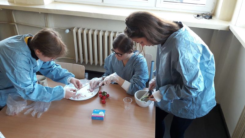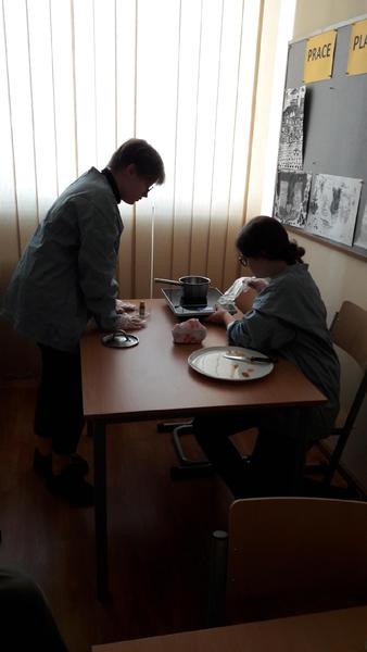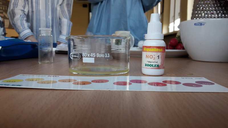 Dziś na zajęciach chemii rozpoczęliśmy duży projekt dotyczący Toksykologii życia codziennego. Dziś skupiliśmy się na badaniu i wykrywaniu toksycznych związków obecnych w żywności. Wykrywaliśmy konserwant E220 oraz badaliśmy obecność potencjalnie rakotwórczych jonów azotanowych(III) w szynce, ogórkach i rzodkiewce. Na kolejnych zajęciach chemii zajmiemy się badaniem toksyczności leków.