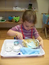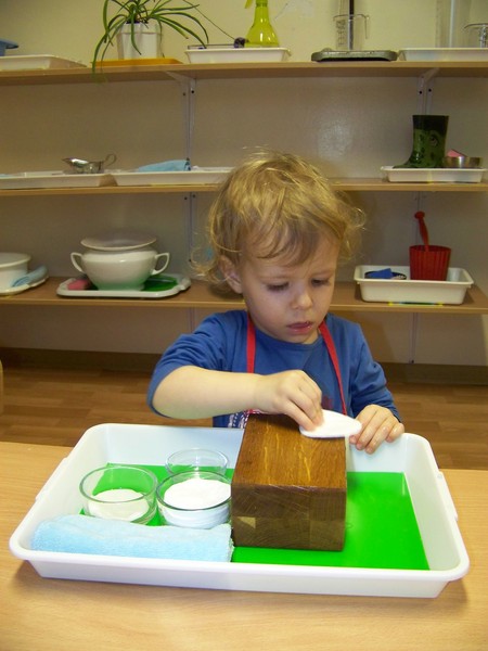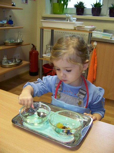 Materiał do ćwiczeń z praktycznego życia w Sali mokrej, to zestaw pomocy związany z samoobsługą, troską o środowisko, zwyczajami i normami społecznymi. W sali mokrej dzieci eksperymentują z wodą, zdobywają samodzielność w myśleniu i działaniu, wzmacniają także poczucie własnej wartości.