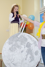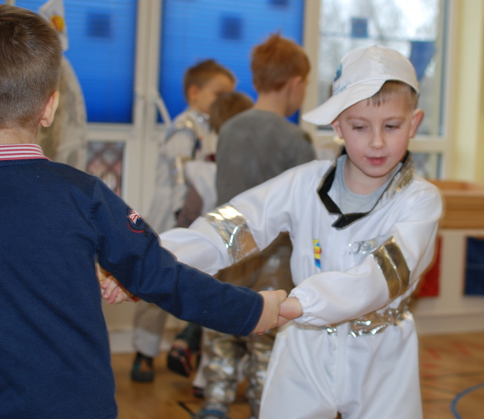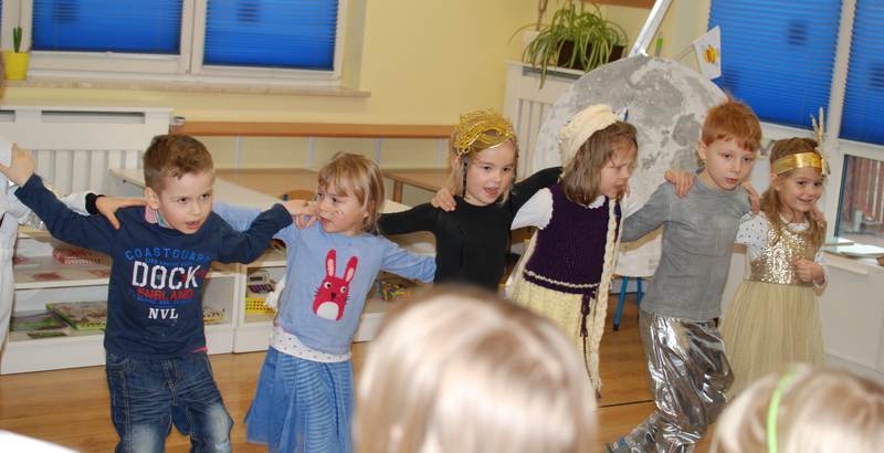W tym roku bawiliśmy się na Księżycu. W podróż polecieliśmy elipsoidalną rakietą.  Były księżycowe opowieści, kosmiczne przysmaki, zabawa z głosem, pląsy, tańce i kosmiczne zabawy.