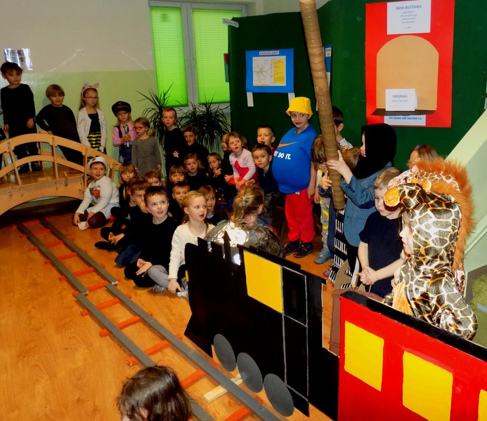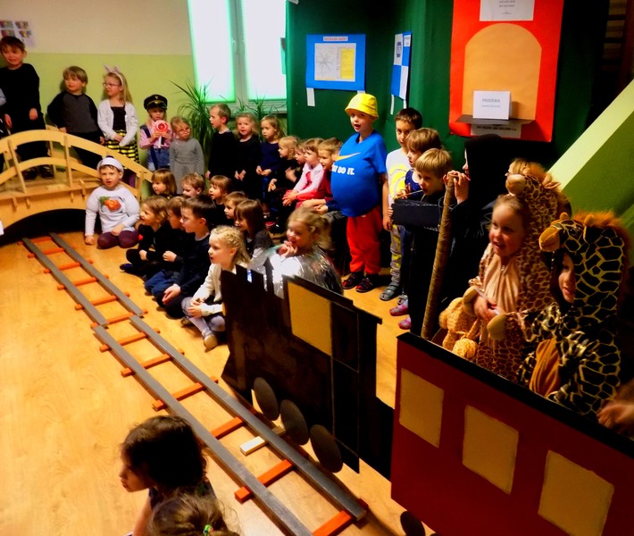 Z okazji dnia Babci i Dziadka przedszkolaki, wraz z nauczycielami przygotowały przedstawienie "Lokomotywa".
