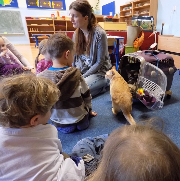 Po ostatnich pieskich wizytach, tym razem nasze przedszkole odwiedziły koty. Czarownik i Gingerek należą do kociej rasy burmskiej. Nasi goście na początku byli nieco nieśmiali, ale z czasem zaczeli eksplorować przedszkolne sale. :)