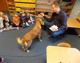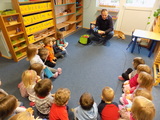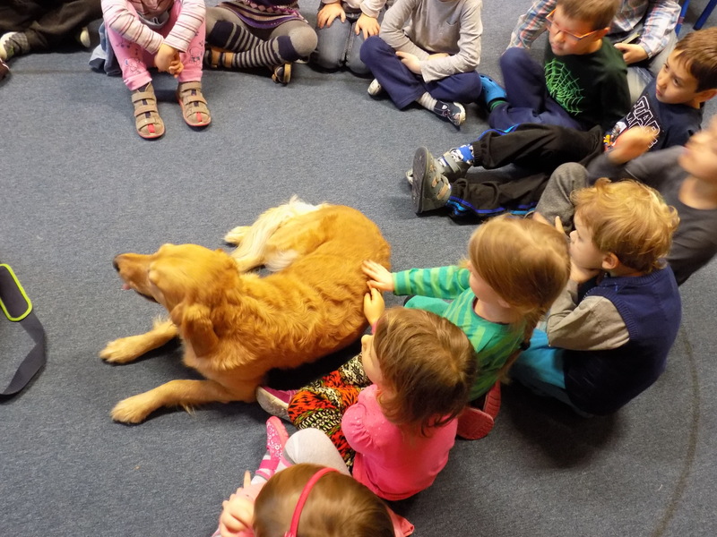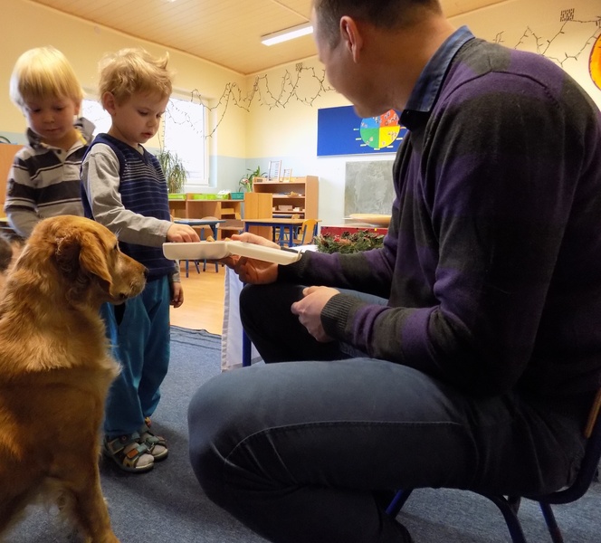 W ostatnim czasie nasze przedszkole niezwykle chętnie odwiedzają pieski. Po spotkaniu z przedstawicielami fundacji Hossa i Zuzią, niedawno odwiedziła nas Fanta wraz ze swoim opiekunem Markiem Klimaszewskim. Pan Marek opowiedział nam o psich zwyczajach i o tym jak należy się zajmować czworonogami.