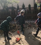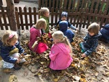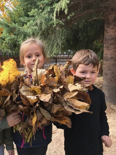 Polska złota jesień zagościła również w naszym przedszkolu. Spadły różnobarwne liście: brzozy, orzecha włoskiego i kasztanowca. Przedszkolaki postanowiły uporządkować podwórko. Część liści dzieci wykorzystały do zrobienia bukietów.