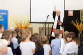 Podczas uroczystego otwarcia wszyscy goście mieli okazję zwiedzić budynek. Chętnych nie brakowało. Sala gimnastyczna, choć duża, na tę ilość zebranych wydała się dość ciasna. Wśród przybyłych gości były oczywiście wszystkie dzieci uczęszczające do szkoły i gimnazjum wraz z rodzicami. Nie zabrakło też ważnych osobistości, zarówno ze środowiska montessiorańskiego, między innymi pani dr Małgorzaty Mikszy i pana Clausa Dietera Kaula, jak i ze środowiska władz lokalnych, mianowicie pana burmistrza gminy i dzielnicy Ursus Wiesława Krzemienia oraz przybyłych z nim radnych i przedstawicieli władz dzielnicy.