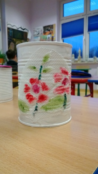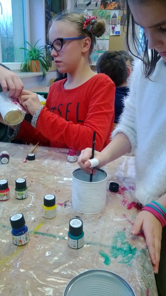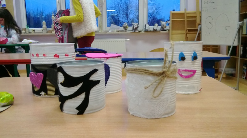 Świetlica szkolna- organizery na biurko z puszek