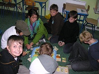 W oczekiwaniu na autokar, który spóźniał się, graliśmy w grę Ali "Osadnicy z Catanu",a niektórzy z Nas korzystali z komputerów.