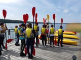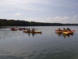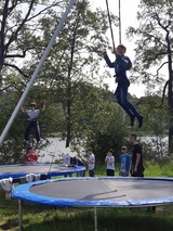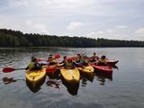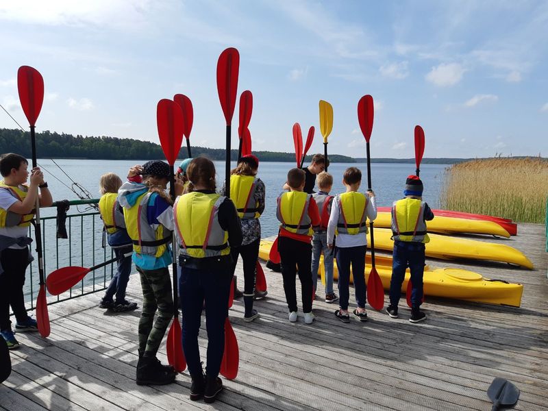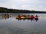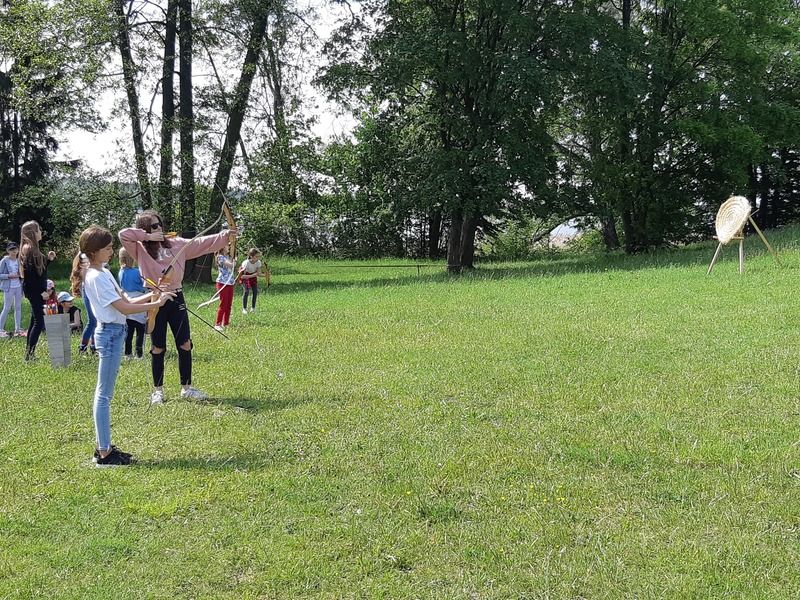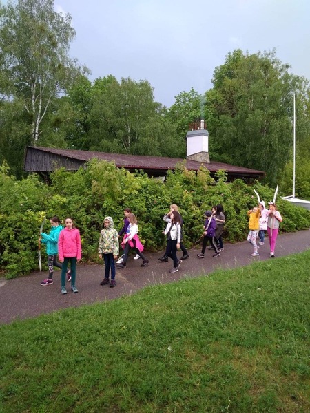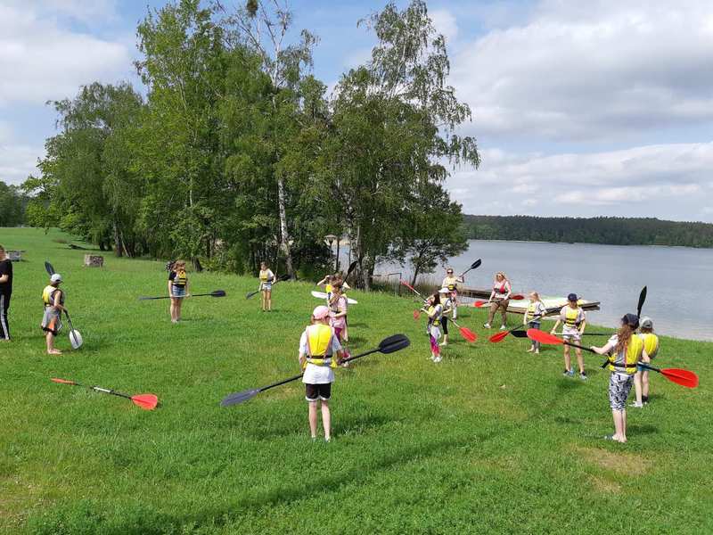 Dzisiejszy dzień rozpoczęliśmy gimnastyką poranną. Następnie podzieleni na grupy uczestniczyliśmy w wielu zajęciach. Spacer do lasu w poszukiwaniu tropów dzikich zwierząt, strzelanie z łuków, eurobungee oraz kajaki dały nam wiele radości. Był też czas na gry zespołowe.