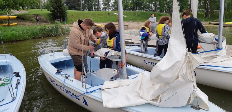 Za nami wspaniały dzień żeglarski na półwyspie Lalka. Mieliśmy okazję wykorzystać w praktyce zdobytą wcześniej wiedzę nt. wiązania węzłów żeglarskich. Uczyliśmy się sterowania, stawiania żagli oraz robienia zwrotów. Świetnie się przy tym bawiliśmy.